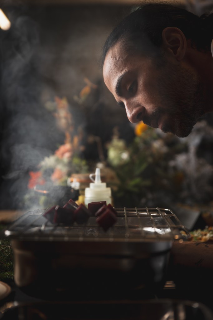 Une cuisine puisant ses origines en Méditerranée. Accueillante, enveloppante, elle n’hésite pas à apporter subtils twists inattendus grâce à l’utilisation du feu et des épices. Elle ne se restreint pas et sait repousser ses limites en proposant des associations peu communes mais toujours savamment dosées.